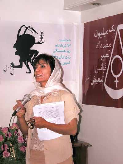 «از این فرصت می خواهم استفاده کنم و فقط احساس خوشحالی و غرور خودم را به عنوان یک عضو کمپین یک میلیون امضاء اعلام کنم، من واقعا آدم خوشبختی هستم که در حرکتی سهیم هستم که می توانم از تجربه و درایت پیشکسوتانی چون سیمین بهبهانی، شیرین عبادی و شهلا لاهیجی و از طراوت، خلاقیت، پویایی و شور نسل جوان جنبش زنان بهره مند شوم.» این جمله «نوشین احمدی خراسانی» نیز پایان بخش برنامه ای بود که با حضور بیش از 100 نفر از فعالان جنبش زنان، به مناسبت سالگرد 22 خرداد برگزار شد HOME. |